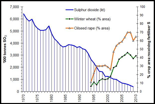 But it had already been noted in Scotland, where the cleaner air meant there was less atmospheric sulphur dioxide. Papers published by Norman Scott of the James Hutton Institute at Aberdeen in the Journal of the Science of Food and Agriculture at the beginning of the 1980s highlighted the lack of sulphur deposition in some lighter soils.