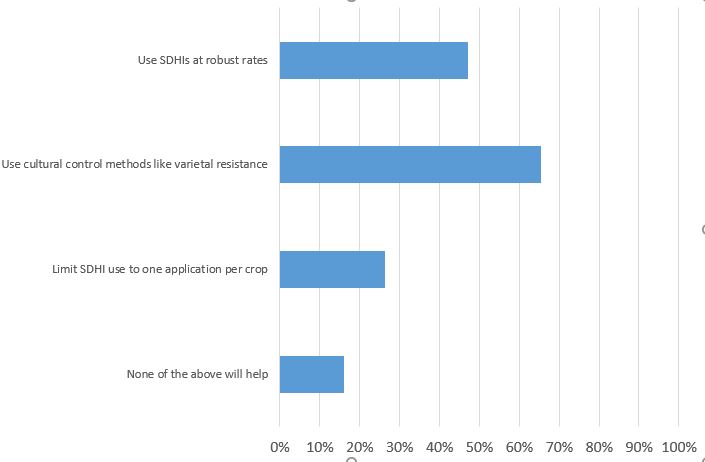 In terms of what growers plan to do to help preserve SDHI efficacy, around two thirds opt for cultural control methods, such as varietal resistance, to reduce the reliance on the chemistry.